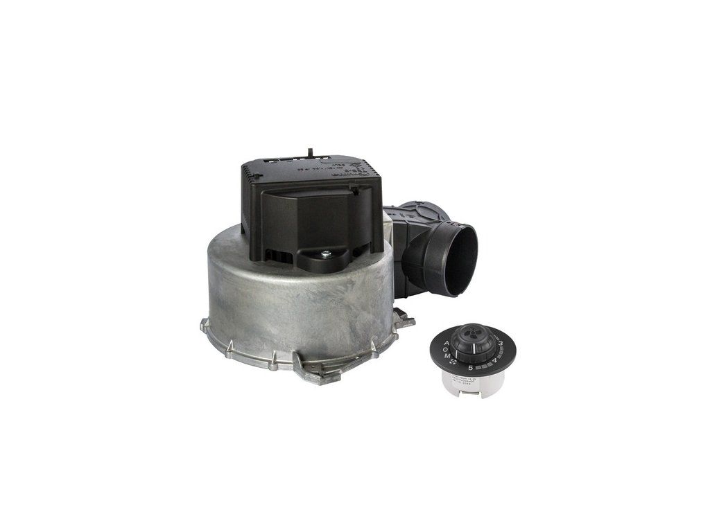 Výkonný 12 V ventilátor / rozfuk teplého vzduchu pro topná tělesa Truma, určený především pro Truma S 5004 a S 3004. Tento model má integrované ovládací bedienteil (ovládací panel) přímo na těle ventilátoru, takže není potřeba samostatný externí ovladač.