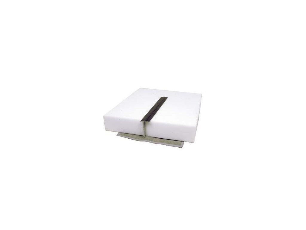 - Protažen štěrbinovou pěnou a napnut