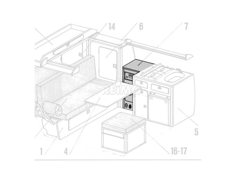 VW T3 Skříň na nádobí s 1 dveřmi jako stavebnice - Granitto laminát