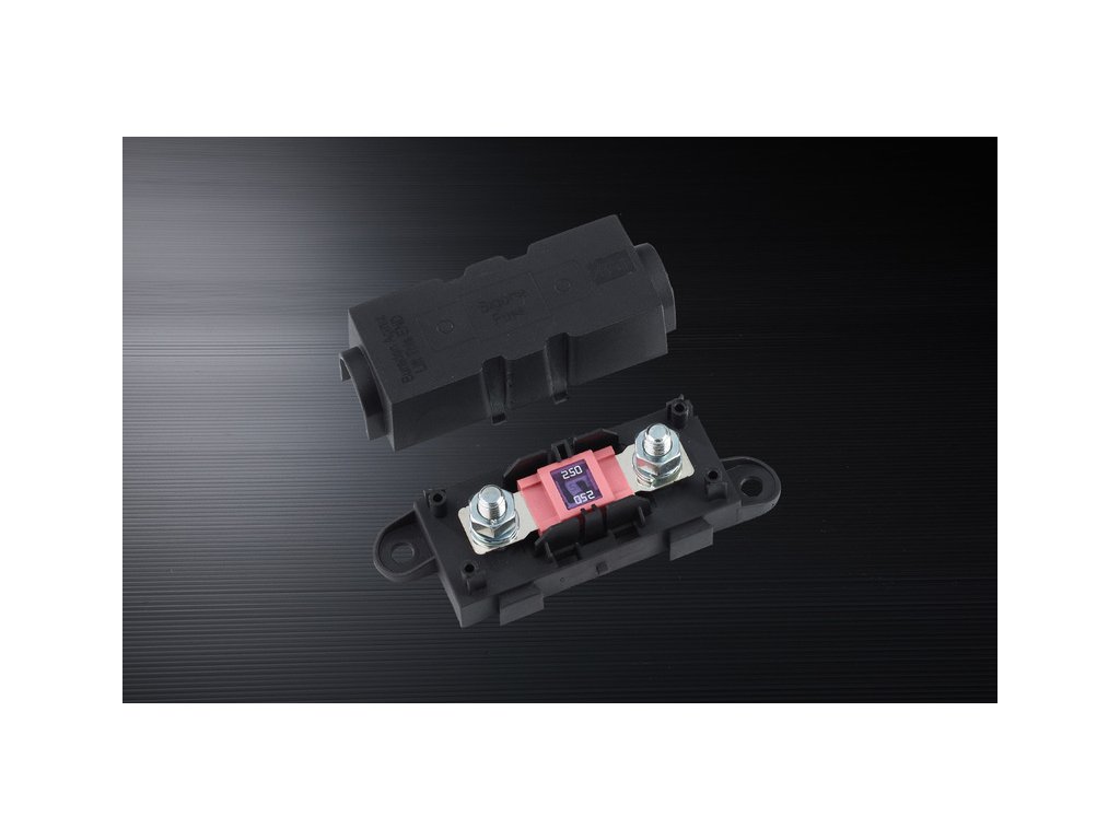 Plně izolovaný pojistkový držák pro pojistky vysokého zatížení k ochraně velkých spotřebičů nebo obvodů s vysokým zatížením. Pojistkový držák je možné napojit a je vybaven M8 závitovými tyčemi z obou stran. Pojistkový držák pro vysoké zatížení k ochraně velkých spotřebičů. Vhodné pro 12 V a 24 V.