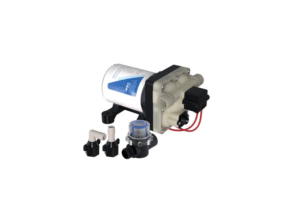 WM aquatec 4-Kammer-Druckmembranpumpe je automatické tlakové membránové čerpadlo pro pitnou vodu, určené pro obytné vozy, karavany, dodávky a lodě. Díky bypass regulaci pracuje velmi tiše, plynule a bez pulzací, což je ideální zejména při použití jemných filtrů a UV-C LED dezinfekce vody.
