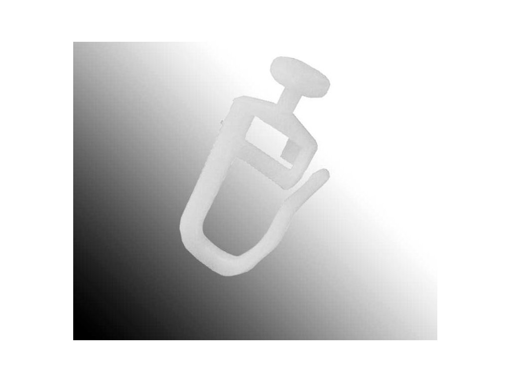 Záclonový jezdec určený do karavanové lišty pro uchycení záclony