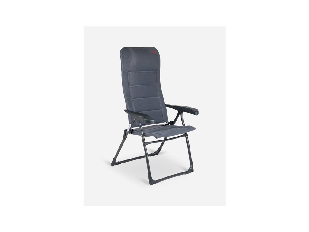 Crespo Air‑Deluxe XS je lehce přenosná, ergonomická kempingová židle s hliníkovým rámem a prodyšným potahem, vhodná pro outdoor, kempování či obytné vozy. Nabízí nastavitelnou opěrku zad, komfortní sedák a nosnost až 110 kg, přičemž její kompaktní rozměry ve složeném stavu usnadňují skladování a transport