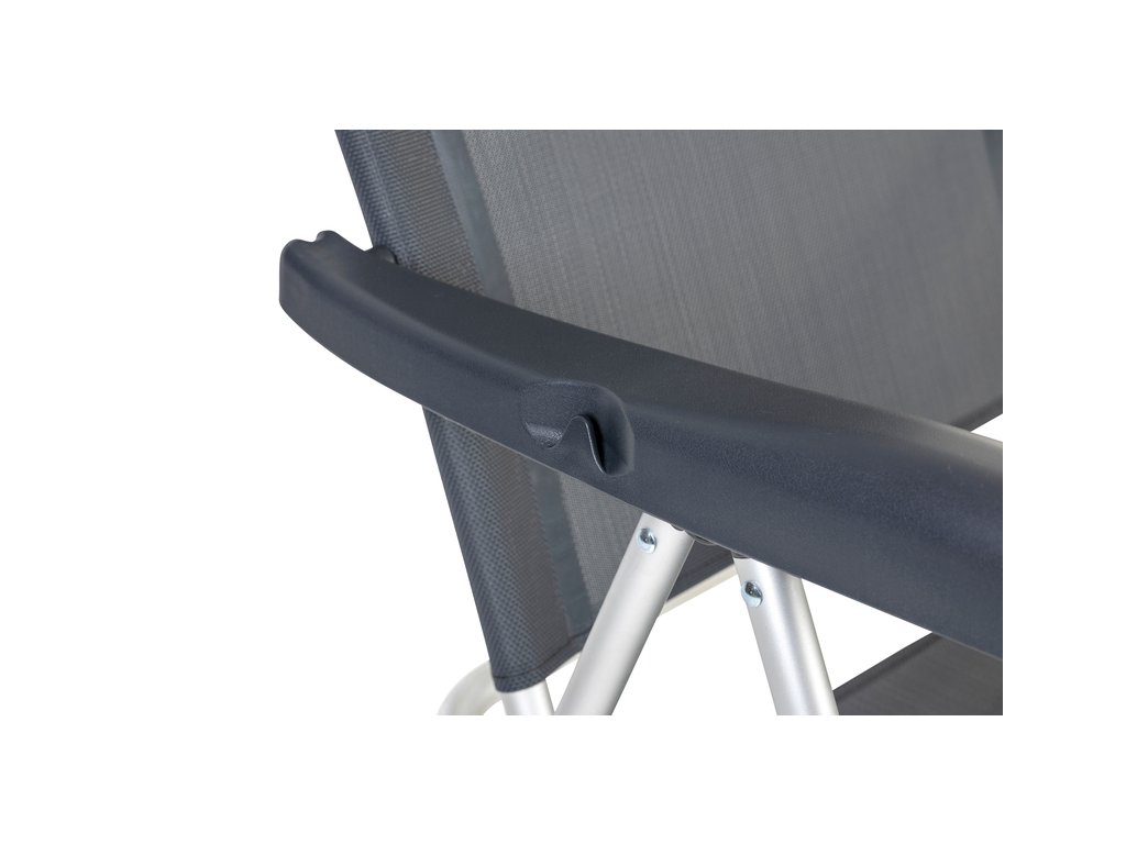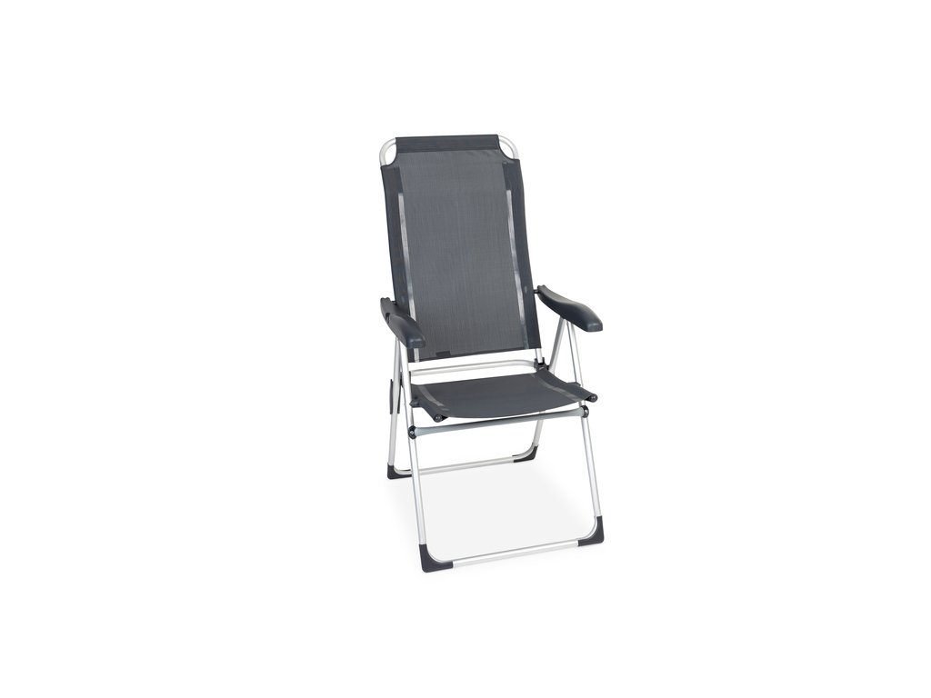 Relaxační židle s alu rámem a 7 pozicemi nastavení opěradla, ideální pro kempování, karavany, zahradu i venkovní posezení. Umožňuje ti nastavit opěradlo do sedací i polo-ležící polohy, takže se skvěle hodí k odpočinku, čtení nebo relaxaci u ohně či stolu.